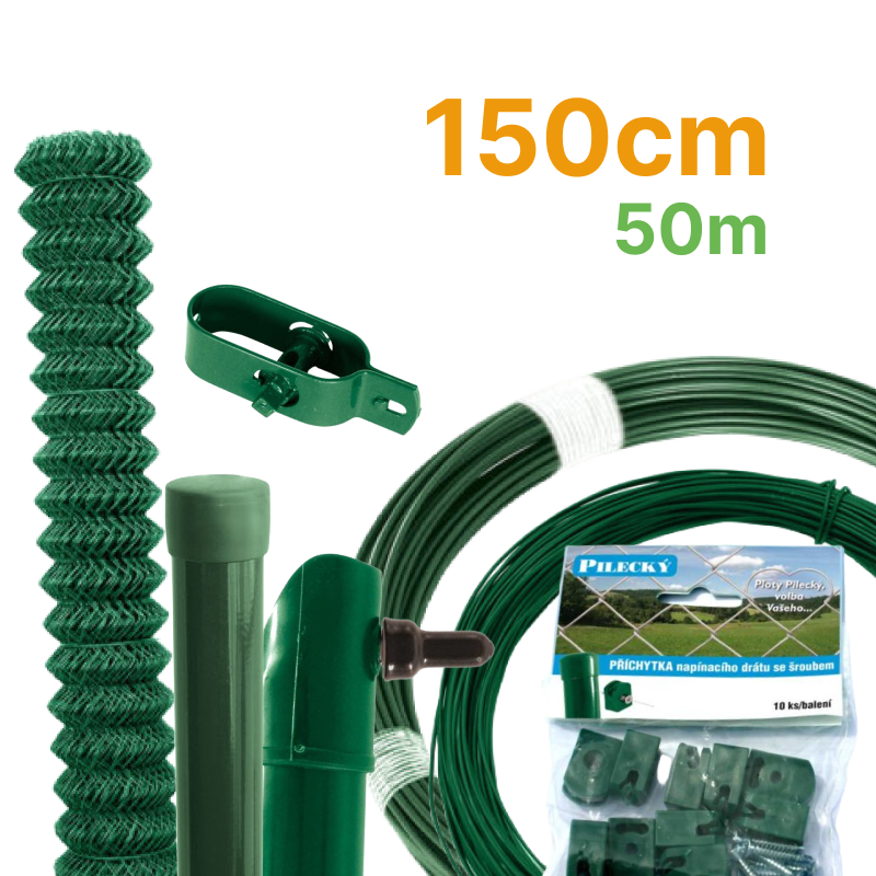 Kompletní set oplocení 50 m – výška 150 cm – zelená (RAL 6005)